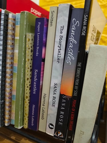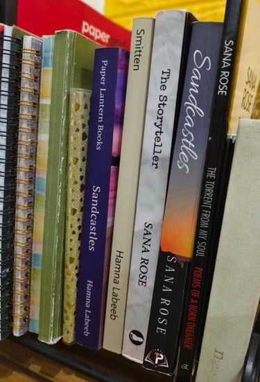 Sandcastles, her debut novel was first published in 2018 under her pseudonym and republished in November 2024. Her second novel, The Storyteller, also published as Sana Rose in 2020, is awaiting republication in 2026. In 2023, Smitten, a poetry collection, was also published. Now, she has completed her third novel, another psychological mystery, and is in the workshop of more fiction projects.